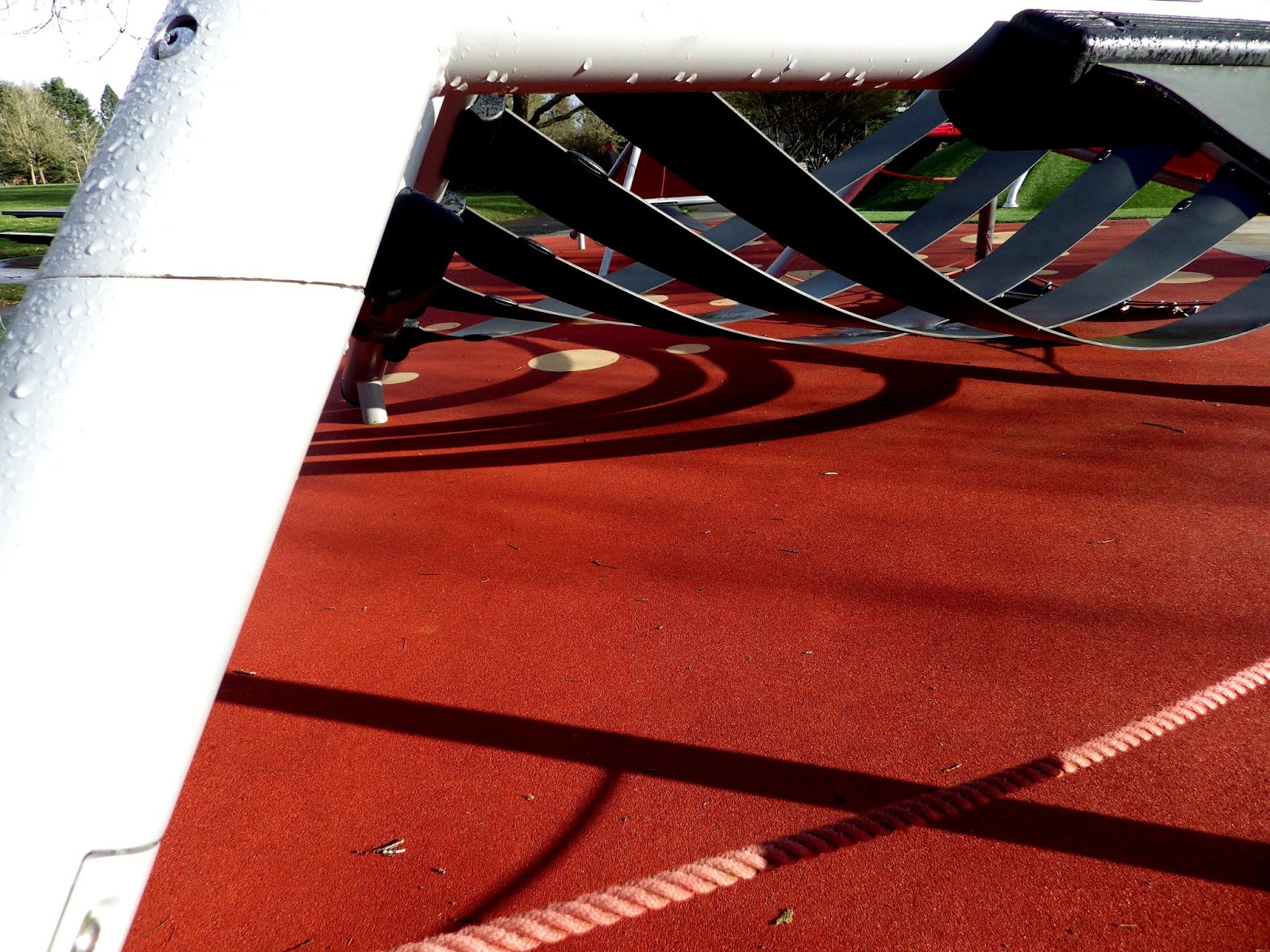 The last time I visited Ventura Park, in 2017, the remodeled playground wasn't quite finished. In fact, most of it was still fenced off and inaccessible. I was able to get photos of some of the climbing sculptures that had been constructed, and I could only speculate about what the rest of the playground would eventually look like. It seemed, at that point, that the new playground was an odd mix of natural and industrial aesthetics, and I wasn't quite sure that it worked.